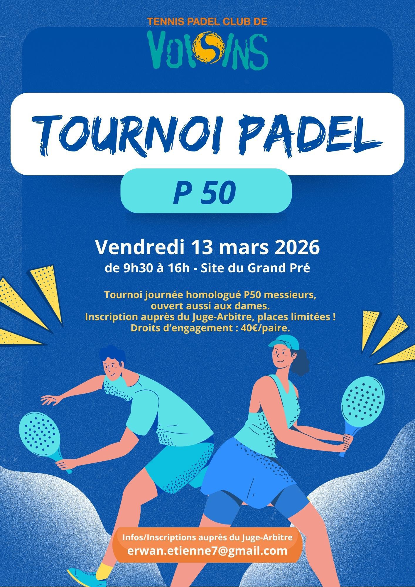 Nouveau tournoi Padel : P50 Messieurs ouvert aux Dames ‼️