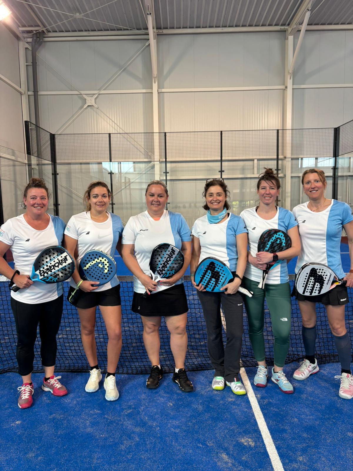 - L'équipe 1 Dames Padel s'adjuge une belle victoire (3/0) à domicile face aux Clayes 🤩🤗 De gauche à droite sur la photo : Aurélie SOMARRIBA, Pauline MENDIELA, Emilie TRINQUET, Mélanie BIROT, Marilyn HARTMANN et Aurélie HAURANT